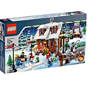 It's a winter wonderland in this snow-covered little town! A special-delivery evergreen, all ready for decorating, arrives at the tree-seller's stand by horse-drawn cart, while ice skaters frolic on the frozen pond with colorful lights and a curious owl perched overhead. Just look out for the freshly-shoveled snow piles - one skater has already tumbled in head-first! At the bakery nearby, the friendly baker prepares delicious holiday treats in his oven and rings up sales at the cash register. Push the glowing LEGO Power Functions brick to fill the building with warm interior light! Includes 7 ½ minifigures, snow owl, horse and lots of winter accessories